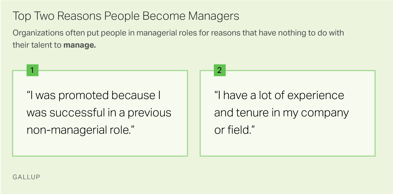 Gallup’un araştırmasına göre 10 kişiden sadece 1’i insan yönetimi ve müdürlük yeteneklerine sahiptir. Bu yüzde 10, müdürlük rollerine gelince şu temel davranışları gösterebilirler: